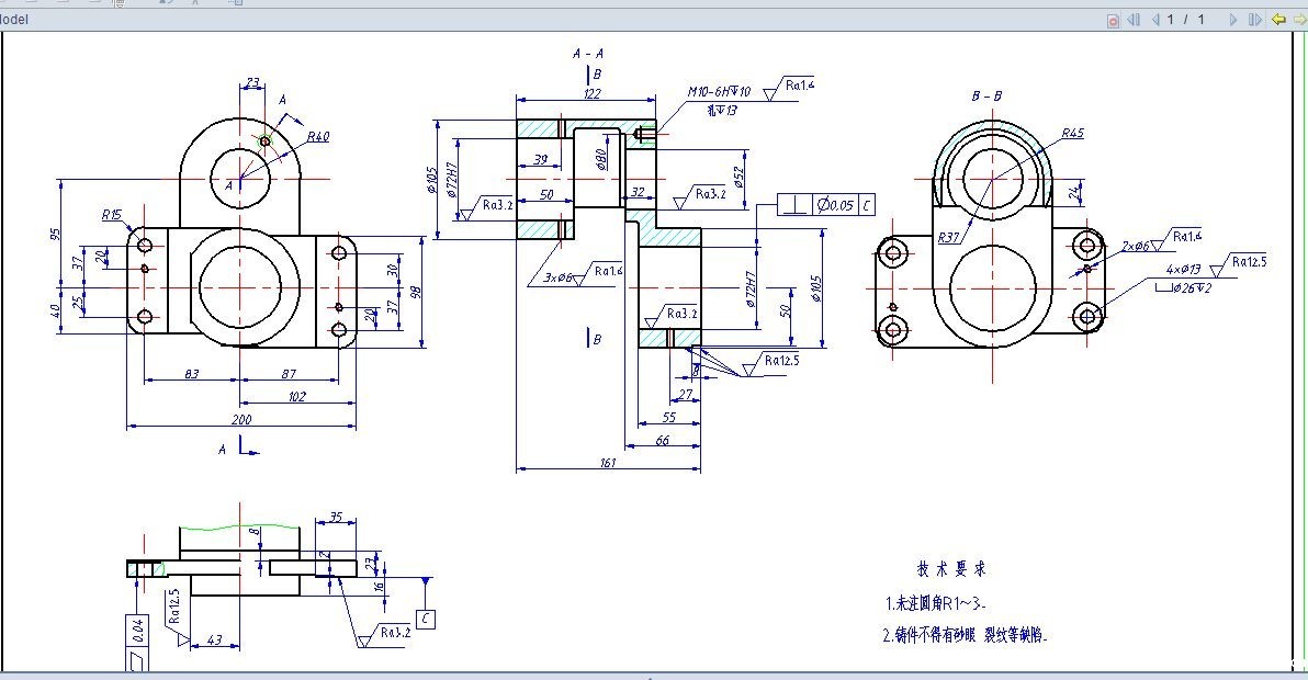 2、零件图识读与实物测绘、轴套类、盘盖类、箱壳类、叉架类零件。