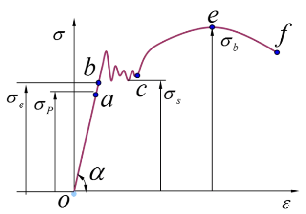 首先,材料拉伸可以分为4个阶段:即弹性阶段–屈服阶段–强化阶段–局部变形阶段。图中ob 为弹性阶段,此阶段遵循胡克定律,即微信图片_20221122140649