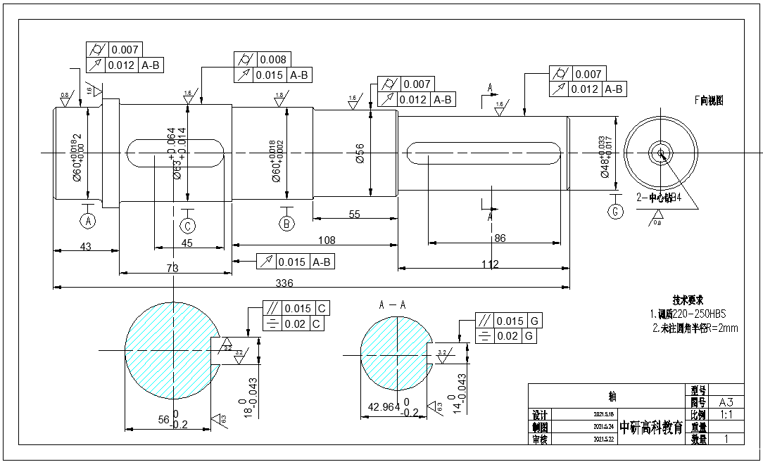 本课程主要讲机械制图相关基础知识,包括剖视图、三视图角法、表面粗糙度、公差与配合、形位公差等;AutoCAD绘图命令的使用;对象图层、颜色、线型的设置;标注样式、文字样式的设置;标注尺寸公差设置;临时块与永久块的使用;图框的制作与使用;产品零件出图标数与图纸打印。
