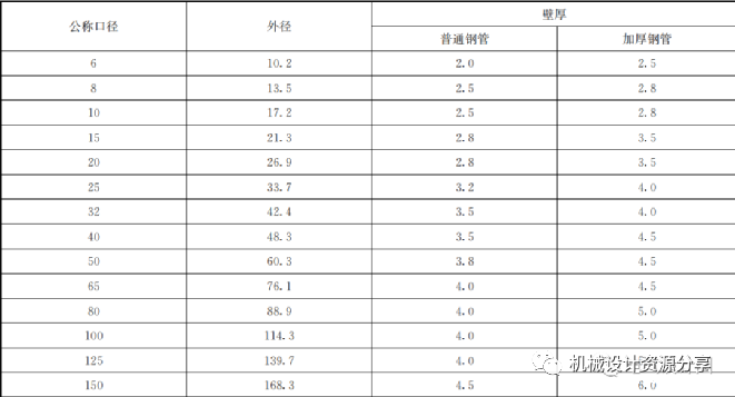 注:表中的公称口径系近似内径的名义尺寸,不表示外径减去两个壁厚所得的内径。