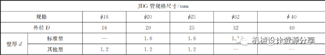 套接紧定式镀锌钢导管,简称JDG管。导管采用优质冷轧带钢,经高频焊机组自动焊缝成型、双面镀锌保护;壁厚均匀,卷焊圆度高,与管接头公差配合好,焊缝小而圆顺,管口边缘平滑;用配套弯管器弯管时横截面变形小。导管出厂长度为4m,共有Φ16、Φ20、Φ25、Φ32、Φ40五种规格。标准型导管壁厚为1.6mm,预埋、吊顶敷设均适用;其他型导管壁厚为1.2mm,规格型号详细见以下表格。
