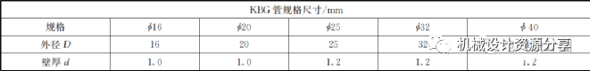 KBG管与管连接时,直接将导管插入直管接头或弯管接头,用套接扣压器在连接处施行扣压即可。常用规格尺寸有Φ16、Φ20、Φ25、Φ32、Φ40等5种,管壁厚度分别为1mm或1.2mm, 规格尺寸见以下表格。导管出厂长度均为4m。