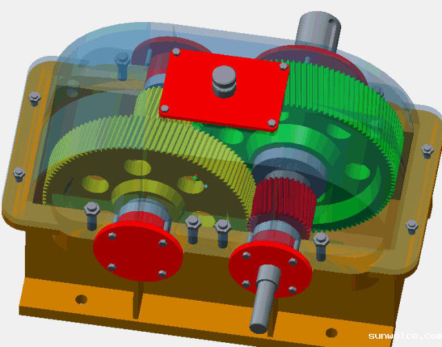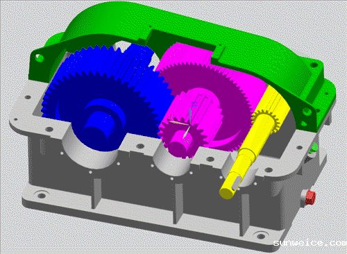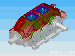 大多数减速器的箱体都采用中等强度的铸铁铸造而成,重型减速器则是采用高强度铸铁和铸钢,当单件少量生产时也可用钢板焊接而成。减速器箱体的外形要求是形状简单且表面平整。为了便于使用安装,箱体通常制成剖分式,剖分面常与轴线平面重合。